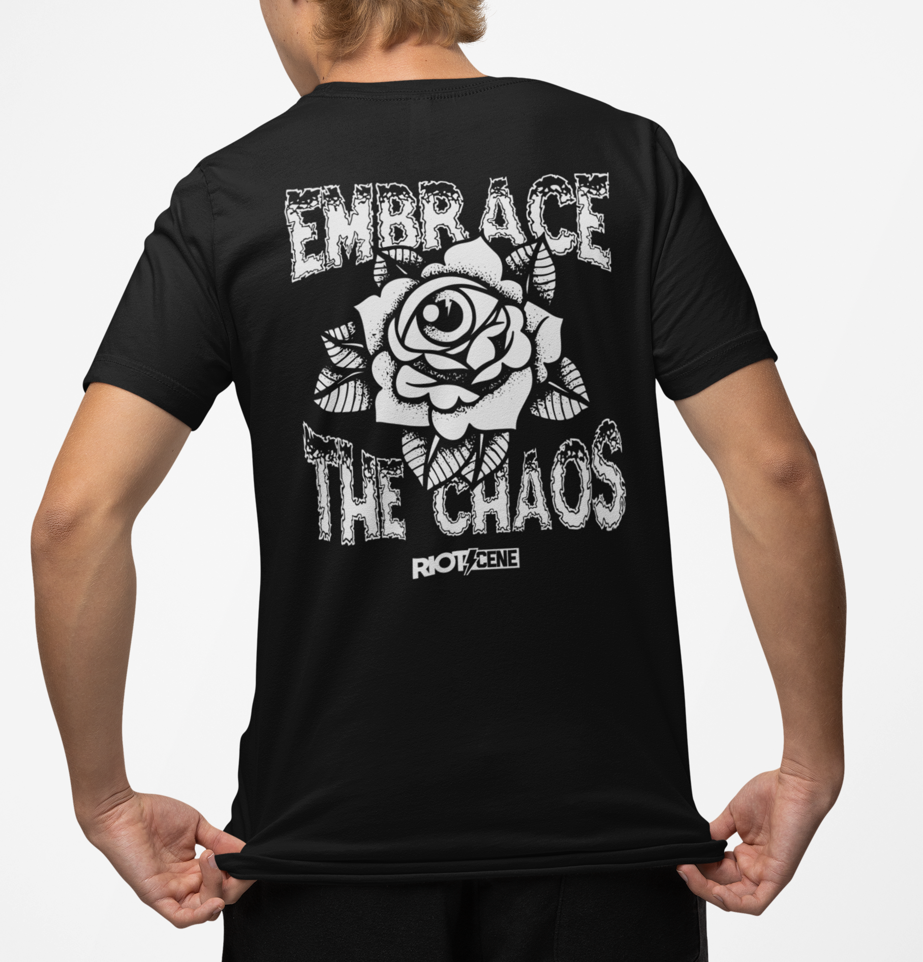 “EMBRACE THE CHAOS” Top quality screenprinted unisex tee. Runs true to size, available in sizes SM – 2XL while supplies last.